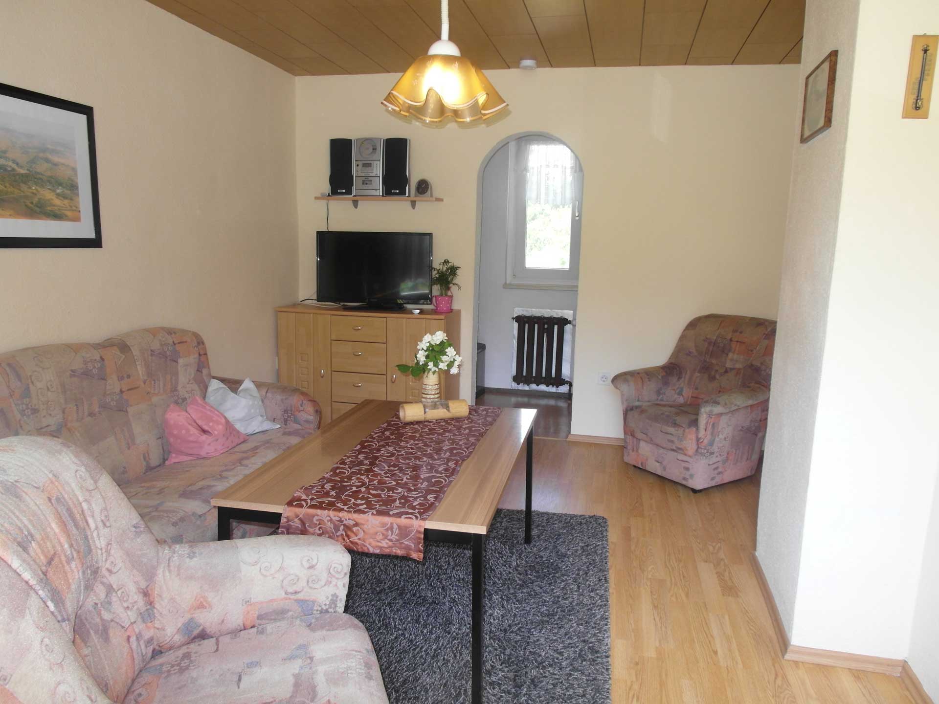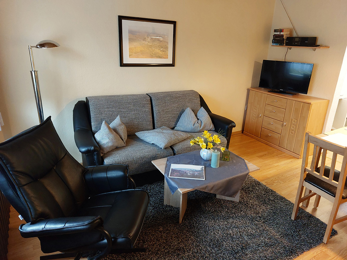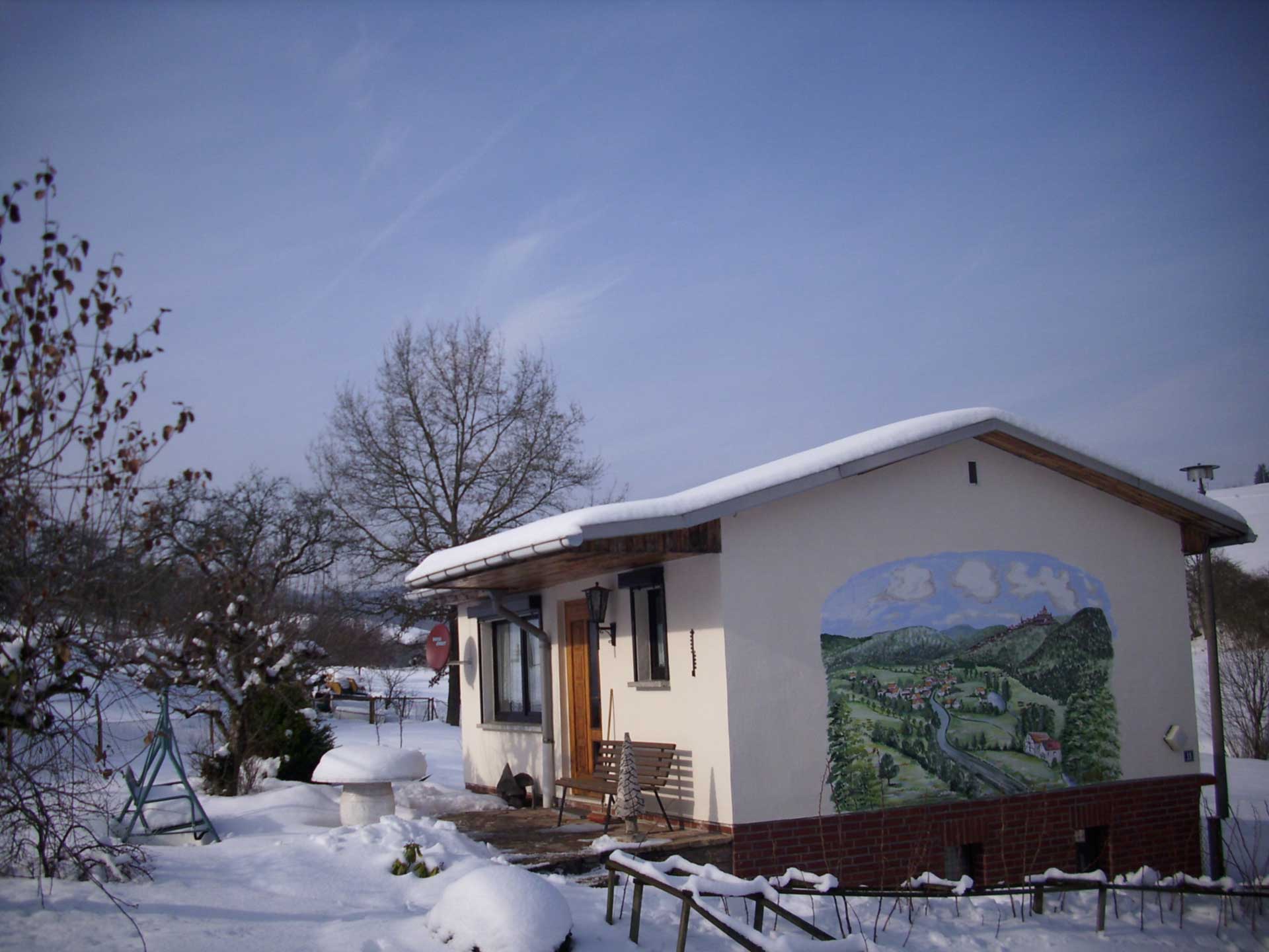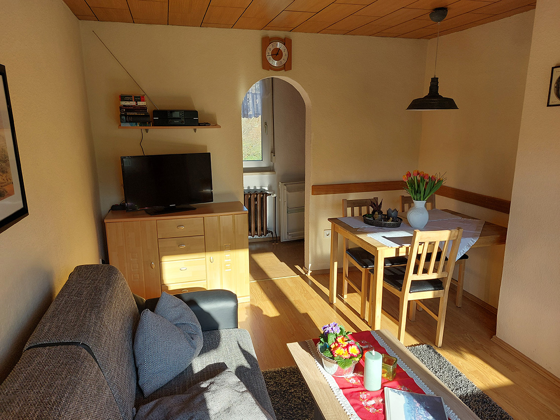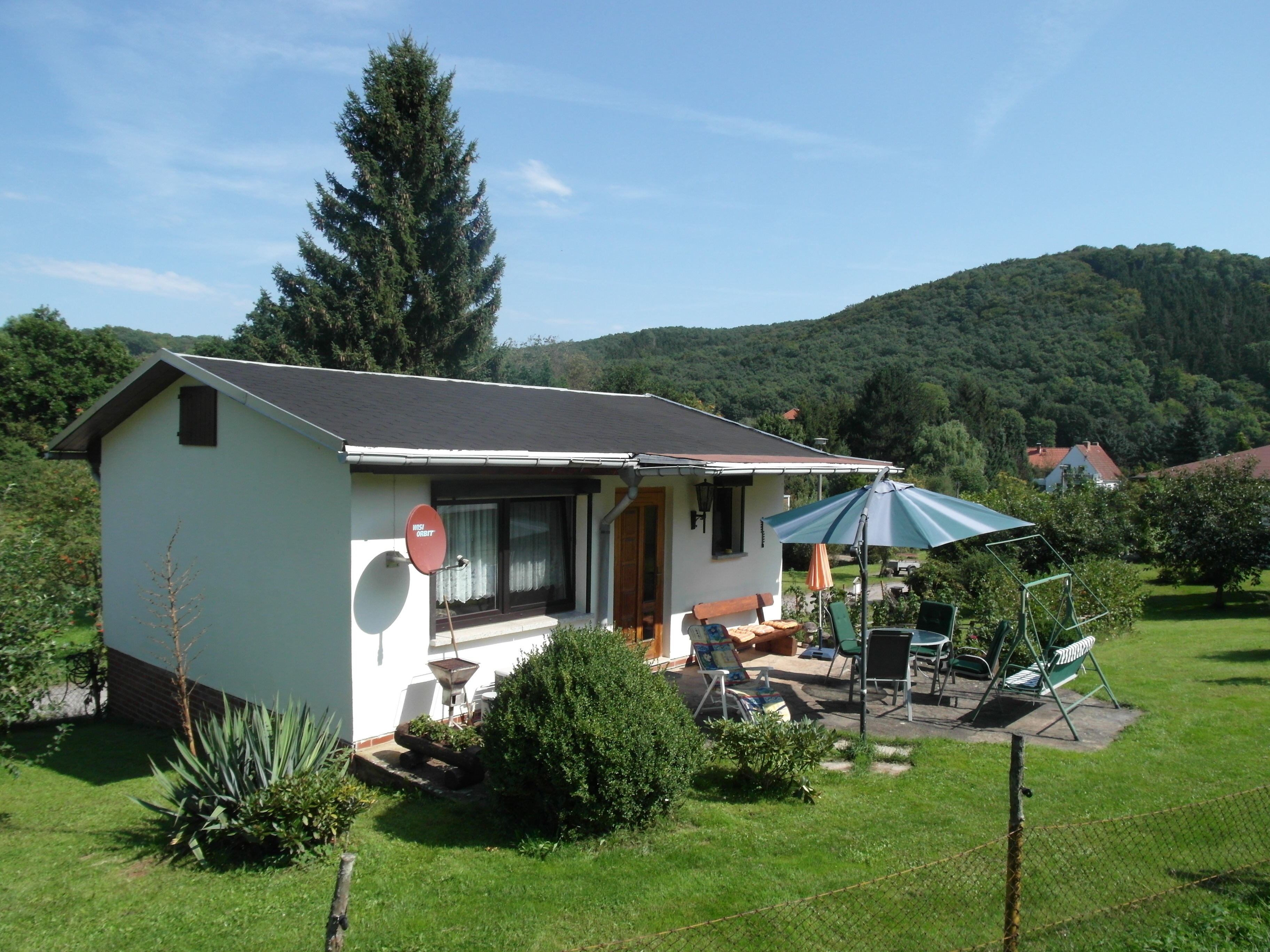 Das idyllisch gelegene, komfortable Ferienhaus am Ortsrand ist für max. 4 Personen ausgelegt und mit einem Wohnzimmer sowie einer kleinen Küche ausgestattet. Das Schlafzimmer besteht aus einem Doppelbett und einem Einzelbett. Auf der Terrasse, wo ein Grill und Gartenmöbel zur Verfügung stehen, kann man den Abend gemütlich ausklingen lassen.
